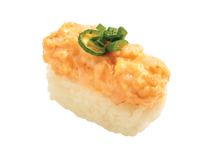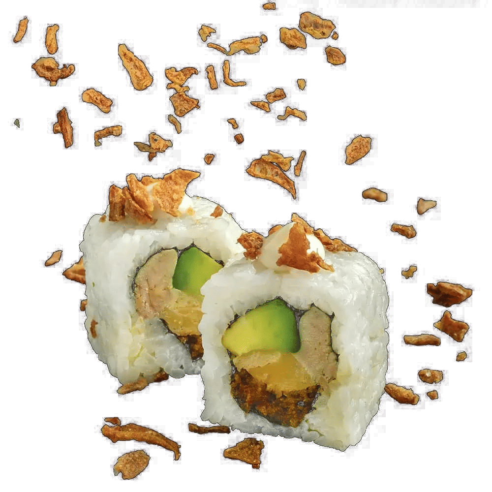 sushi rizs, omlett, krémsajt, rukkola, füstölt lazac, zöld repülőhal kaviár, chilli szál