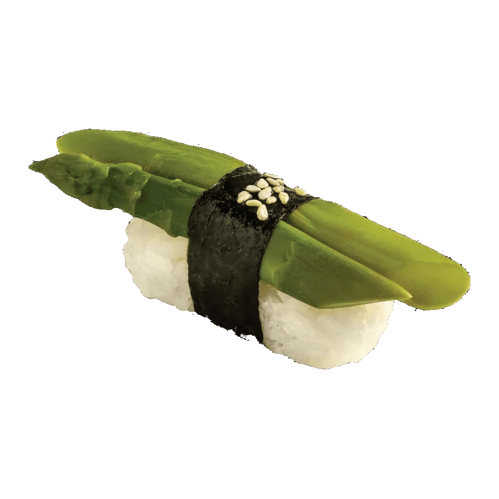4 Vega tekercs (bébirépa, avokádó, uborka, füstölt tofu), 2 spenót maki, 2 uborka maki, 2 avokádó maki, 1 shiitake gomba nigiri, 1 avokádó gunkan, 1 bébikukorica nigiri, 1 spárga nigiri